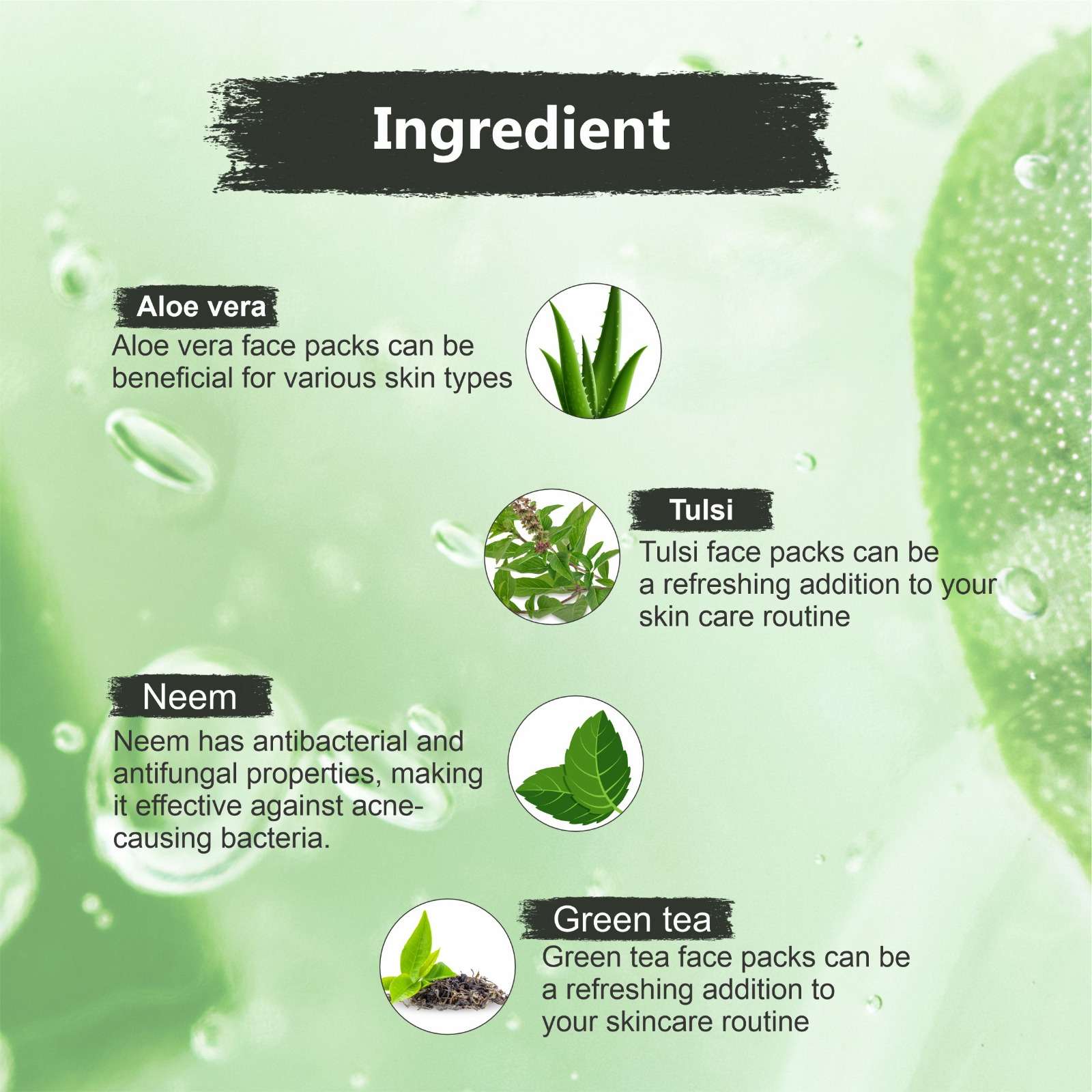 - Fights Acne: Aloe vera and neem help reduce acne and inflammation.